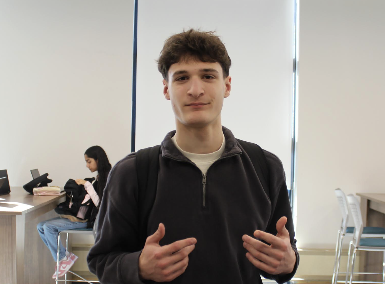 Sawyer Stein, a sophomore says “ normally, I wear Uniqlo uncuffed gray sweats. I have them in a light gray, and dark gray color. Along with the gray sweats, I wear white tees, black tees, black zip ups, and navy blue hoodies many times throughout the week.”